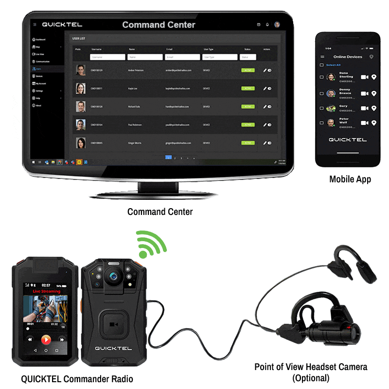 QUICKTEL Command Center License with PTT Walkie Talkie Body Camera with GPS Tracking, Video Livestreaming, and Global Coverage